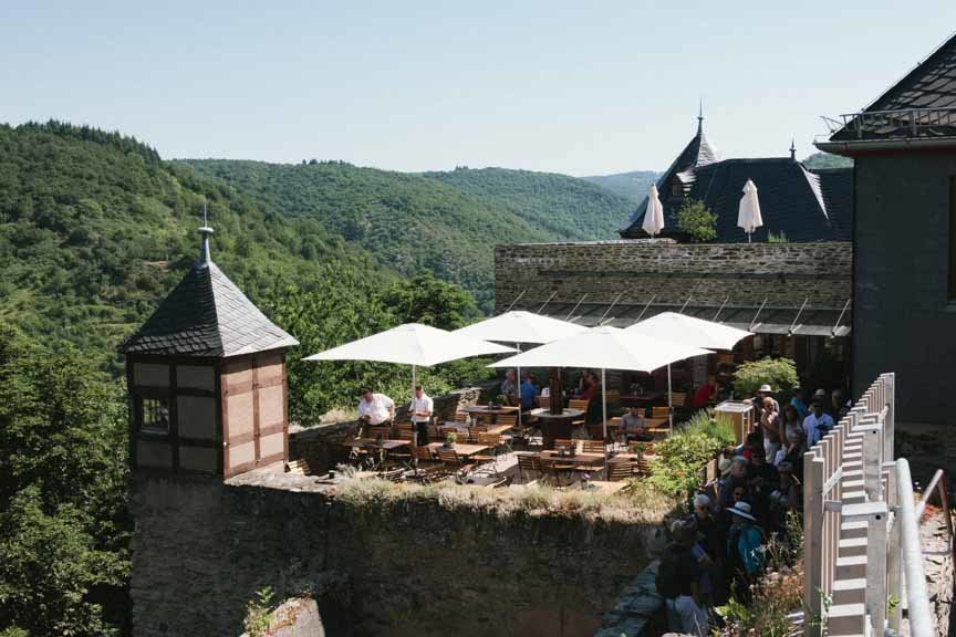 - Gastronomie: In der Marksburg befindet sich ein Selbstbedienungsrestaurant mit vielen Sitzmöglichkeiten und großen Panoramafenstern. Mitgebrachte Speisen und Getränke können auf der Terrasse verzehrt werden.