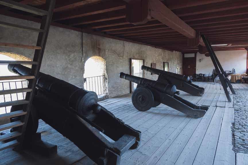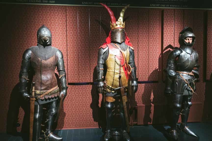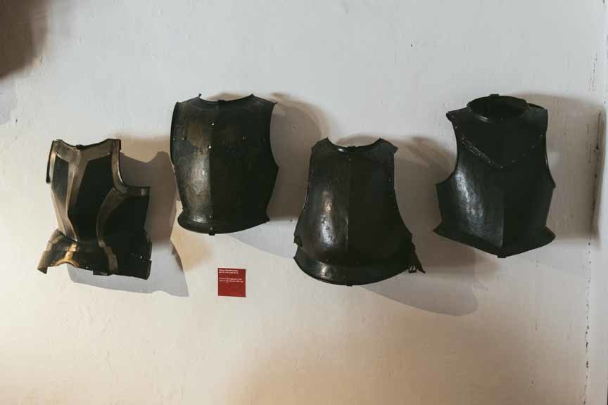 In der Rüstkammer befinden sich vierzehn bekleidete Puppen aus verschiedenen Epochen und von unterschiedlichen Völkern welche die Veränderungen der militärischen Bekleidung in den Jahrhunderten von der Antike bis zur frühen Neuzeit anschaulich darstellen.