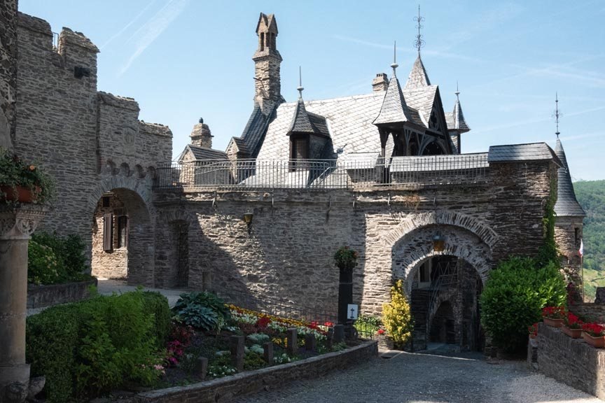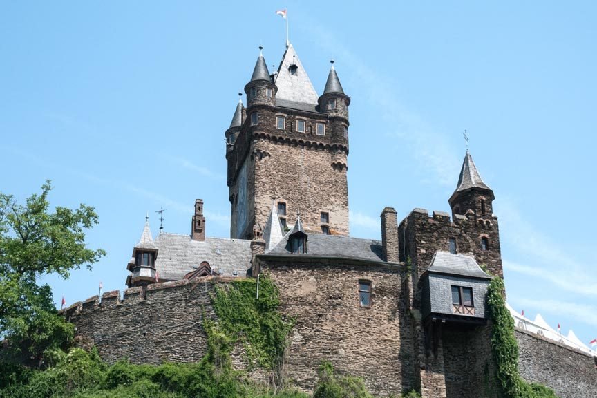 Die Reichsburg beherrscht das Stadtbild von Cochem. Der mächtige Bergfried fällt dabei besonders auf. Oben wird man ins Mittelalter versetzt, besonders wenn die Führer in mittelalterlichen Kostümen daher kommen. ...