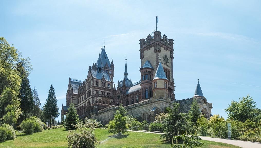Schloss Drachenburg in Königswinter ist ein prachtvolles Schloss am Drachenfels und zählt zu den beeindruckendsten Bauten des Rheinlands. Es wurde zwischen 1882 und 1884 vom Börsenmakler Stephan Sarter erbaut, der das Schloss als repräsentativen Wohnsitz plante. Sarter, der als Finanzier im 19. Jahrhundert zu Reichtum gelangte, lebte jedoch nie selbst im Schloss. Die Anlage vereint Architektur und Stilformen des Historismus, die mittelalterliche und neugotische Elemente miteinander kombinieren und ein märchenhaftes Erscheinungsbild schaffen. ...