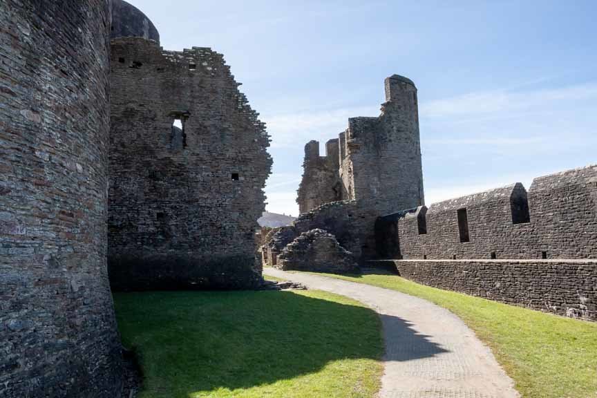 Parken: Es sind nur sehr wenig Parkmöglichkeiten vorhanden. Benutzen Sie die Parkplätze im Stadtzentrum oder an der Straße. Für Behinderte stehen nur wenige Parkplätze an der Burg zur Verfügung. Diese müssen im Voraus reserviert werden, indem Sie das Büro unter der Nummer 02920 878 100 anrufen. Beachten sie, dass nur Begleithunde vor Ort zugelassen sind.