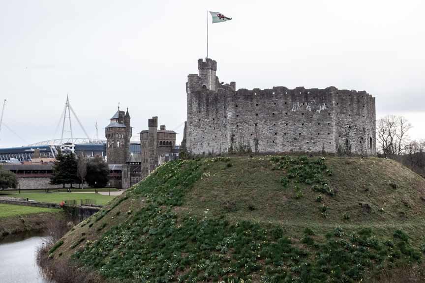 Cardiff Castle ist eine der beeindruckendsten historischen Stätten in Wales, mit einer Geschichte, die über 2.000 Jahre zurückreicht. Ursprünglich errichteten die Römer an dieser Stelle im 1. Jahrhundert ein befestigtes Lager, von dem noch Teile der römischen Mauer erhalten sind. Nach der normannischen Eroberung entstand im 11. Jahrhundert eine Motte mit einer steinernen Burg auf einem künstlichen Hügel. Weitere Festungen und Behausungen kamen hinzu. Der Black Tower wurde errichtet. 1126 wird Robert Curthose, Herzog der Normandie und Bruder König Heinrichs I., bis zu seinem Tod in der Burg inhaftiert. Im Mittelalter wurde die Burg erweitert und spielte eine wichtige Rolle als Verteidigungsanlage und Machtzentrum.