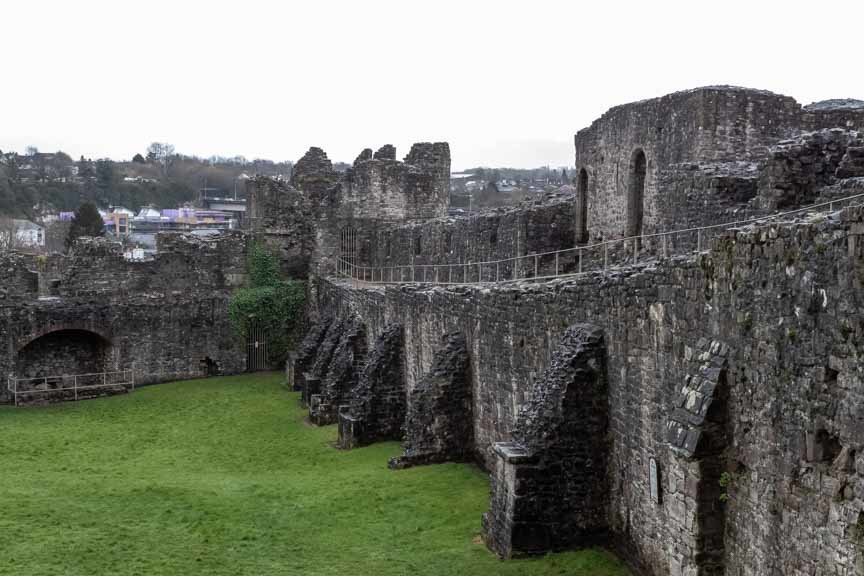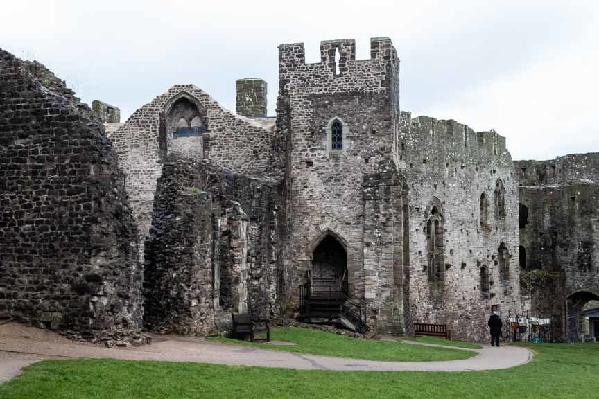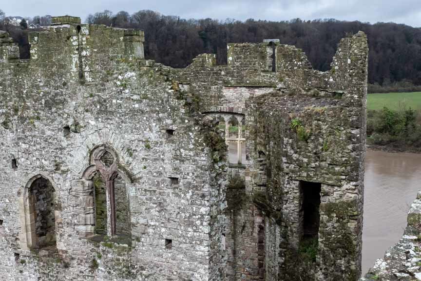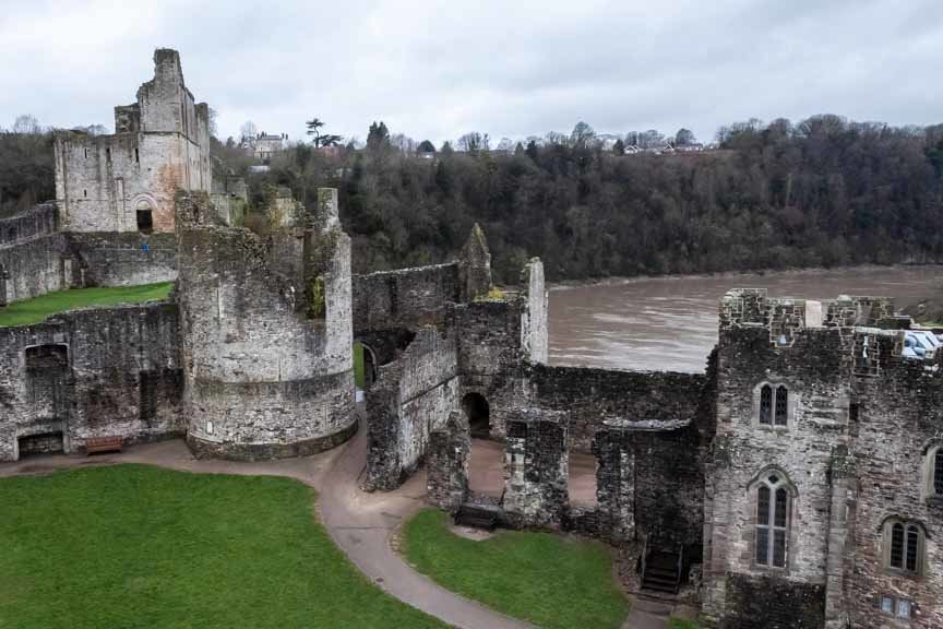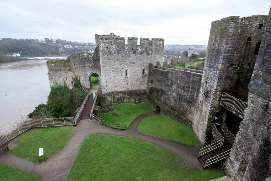 Auf einer Klippe über dem Grenzfluss Wye, liegt die Burg Chepstow Castle, beim Ort Chepstow. Im 11. Jahrhundert begann William FitzOsbern mit dem Bau der Burg, nachdem er zum Earl ernannt wurde. Mit ihm entstanden der Keep und die Wehrmauern. Williams Sohn verlor seine Besitzungen an die Krone. Später wurden sie an die Familie de Clare übergeben. Isabel de Clare heiratete William Marshal und so ging die Burg in den Besitz der Marshals über. Die bauten die Burg weiter aus, bis sie 1245 an Roger Bigod, den 4 Earl of Norfolk fiel. Durch seinen Sohn wurde sie weiter ausgebaut, so wurde sie so wehrhaft, dass die meisten einen Bogen um sie machten....Unter Charles Somerset, Earl of Worchester und anderen Besitzern wurde sie im 16. Jahrhundert wohnlicher ausgebaut. Im Bürgerkrieg veränderten sich die Besitzverhältnisse öfters, sogar als Staatsgefängnis wurde sie eingesetzt. Eine Garnison der Artillerie hatte auch ihren Stützpunkt bis 1685 dort. Nachdem sie verlassen wurde verfiel sie. Im 19. Jahrhundert wurde sie teilweise restauriert. 1953 ging sie in Staatsbesitz über und wird heute von Cadw verwaltet.