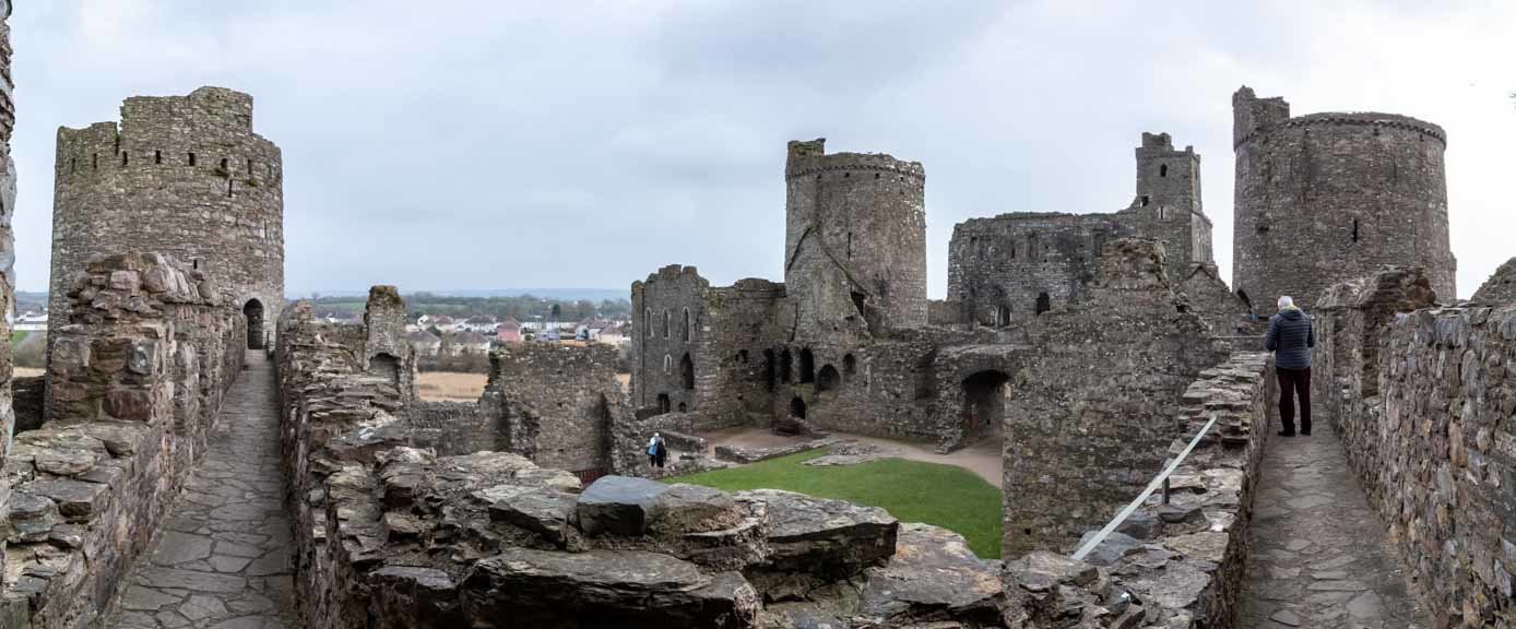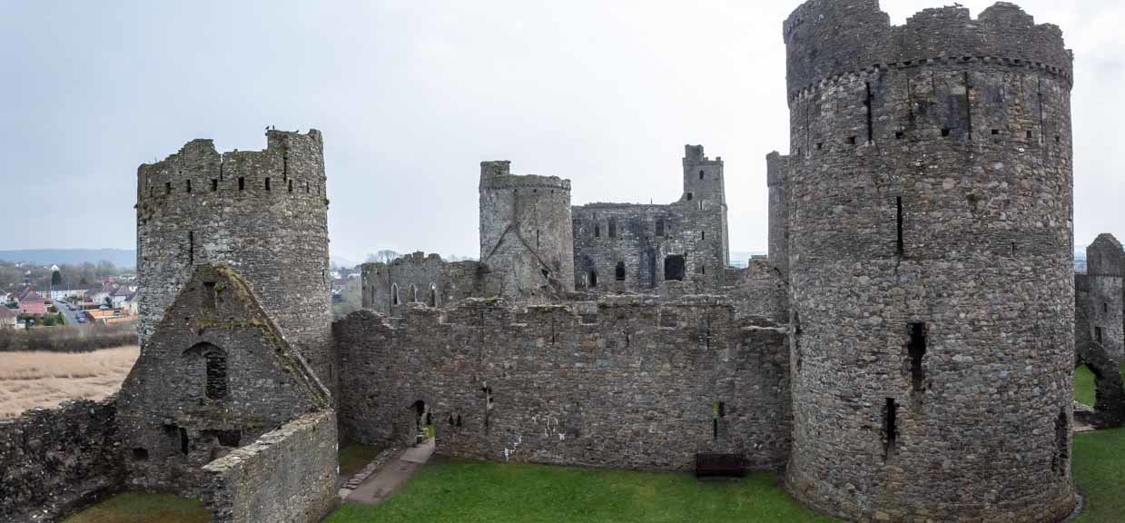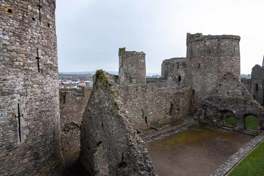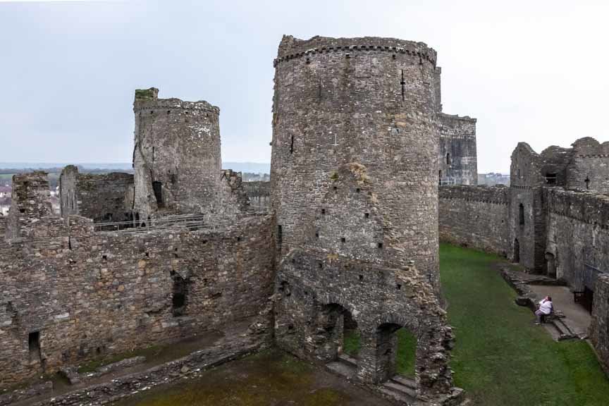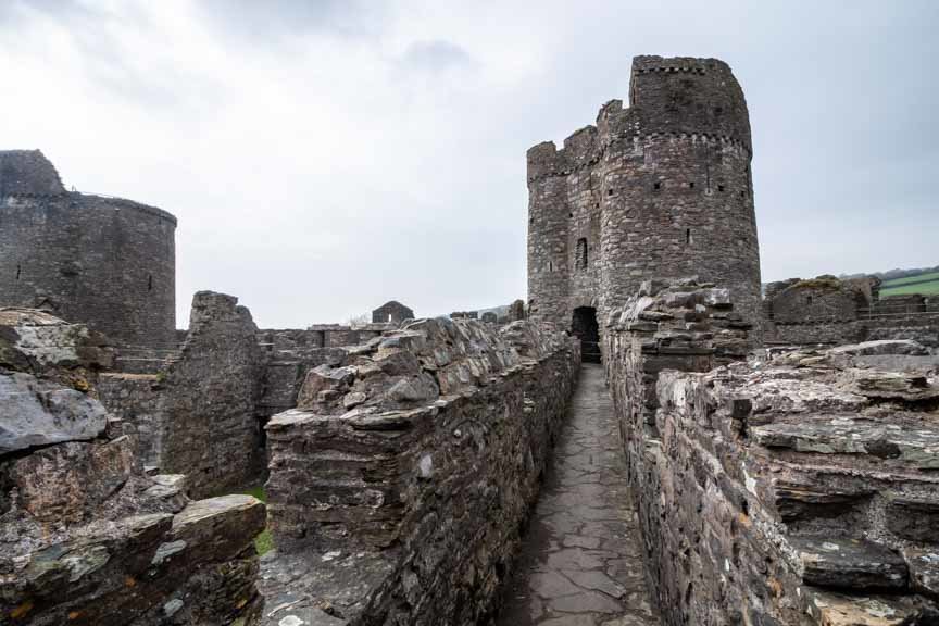 Die Ruinen von Kidwelly Castle sind beeindruckend. Von außen betrachtet würde man nicht annehmen, dass Kidwelly Castle nur noch eine Ruine ist. Sie gilt als eine der best erhaltenen mittelalterlichen Burgen in Wales. Ein großer Teil der Burgmauern kann noch betreten werden und bietet einen tollen Ausblick auf die Innenhöfe der Burg sowie die einzelnen Gebäude. Einige der Gebäude innerhalb des Burghofs,... wie die große Halle haben noch eine Front- und Rückwand sowie die Umrisse der seitlichen Wände, wodurch man eine gute Vorstellung davon bekommt wie groß diese einst war. Auch einige der Türme sind noch gut erhalten und können betreten werden.