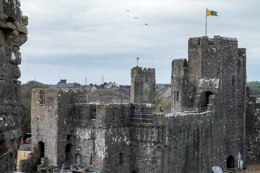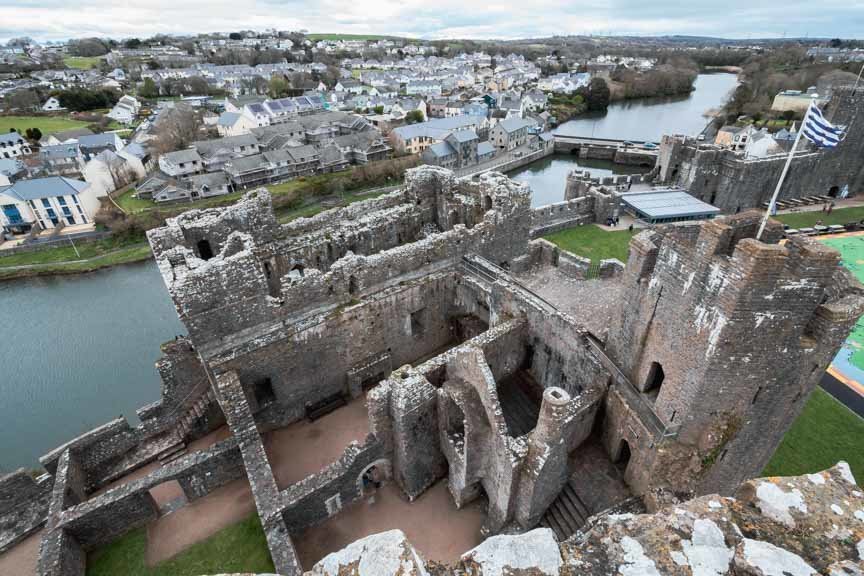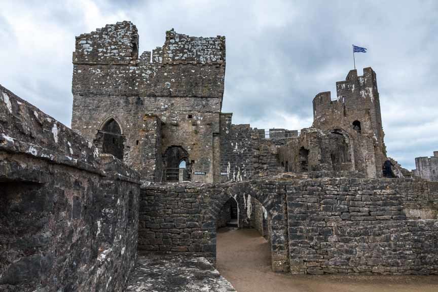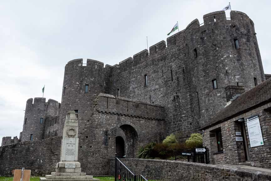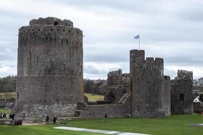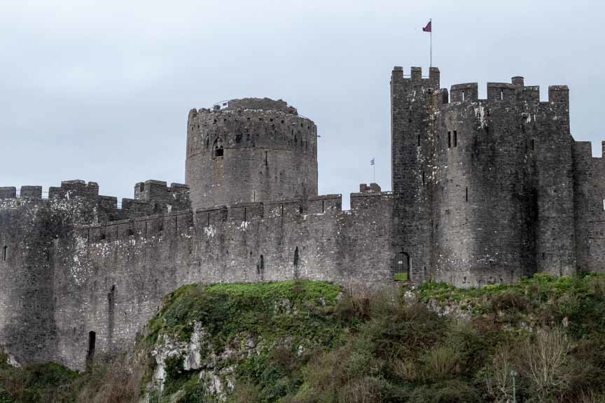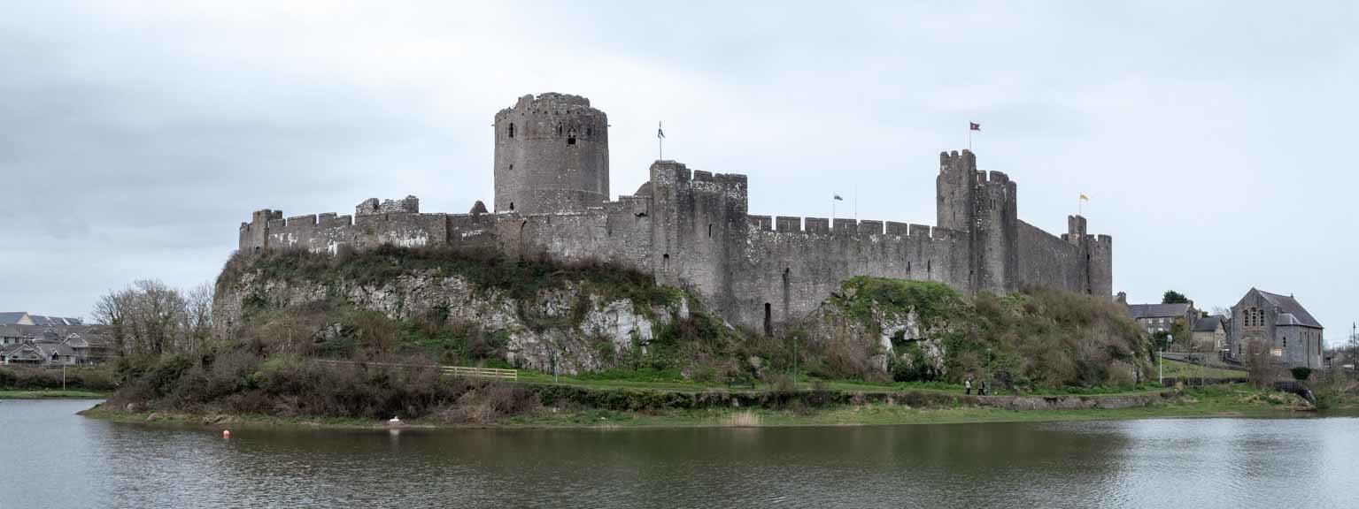 In Pembrokeshire bei Pembroke steht Pembroke Castle, 1093 vom normannischen Roger de Montgommery erbaut. Auf drei Seiten von Wasser umgeben, war sie gut geschützt. Sie wurde zum Teil aus Holz gebaut, trotzdem konnte sie zweimal den Belagerungen der Waliser trotzen.