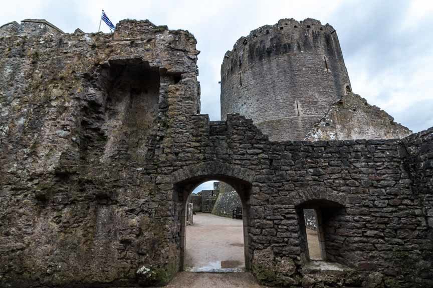 Durch das große eindrucksvolle Torhaus mit den drei Fallgittern betritt man Pembroke Castle. Um die große Innenfläche befindet sich die fünf Meter dicke äußere Ringmauer.