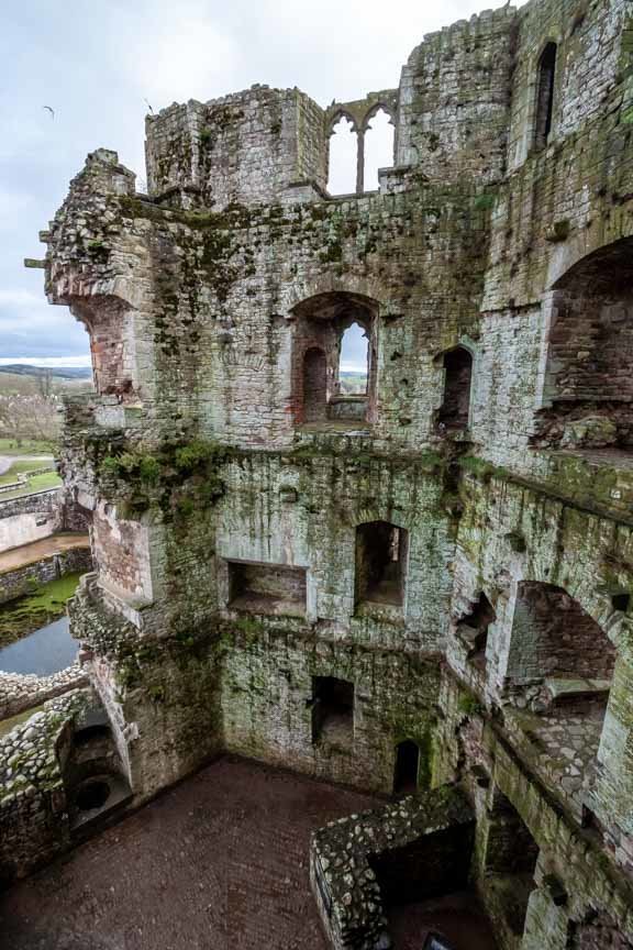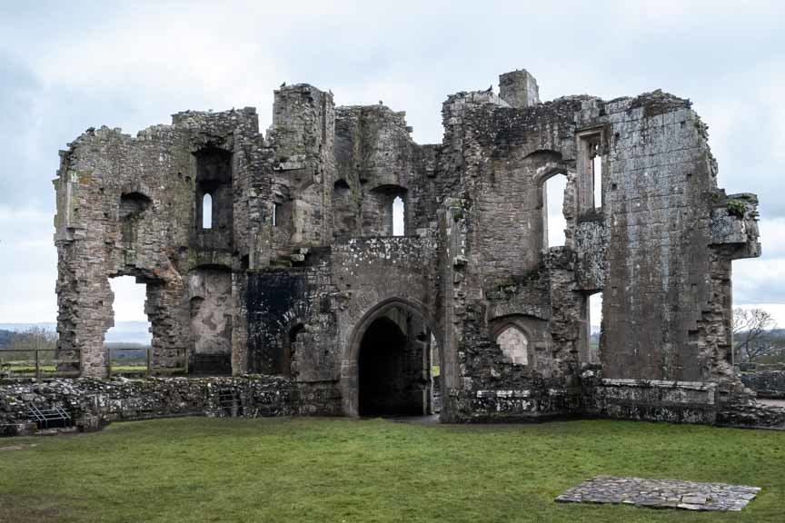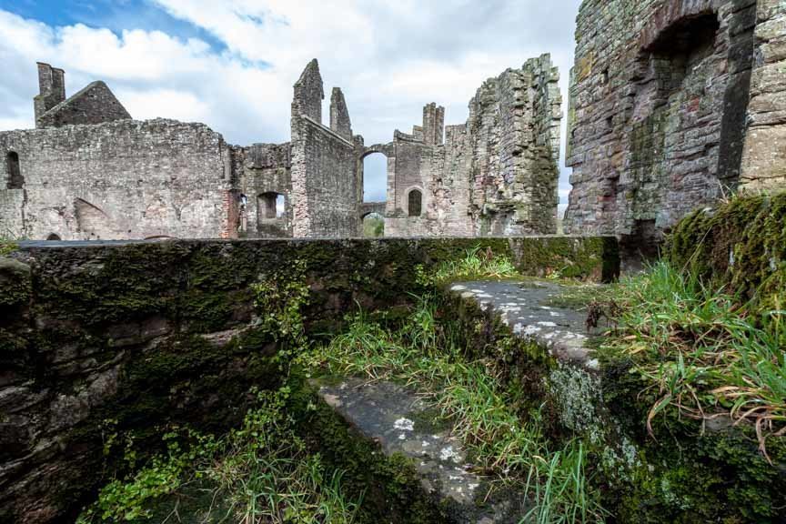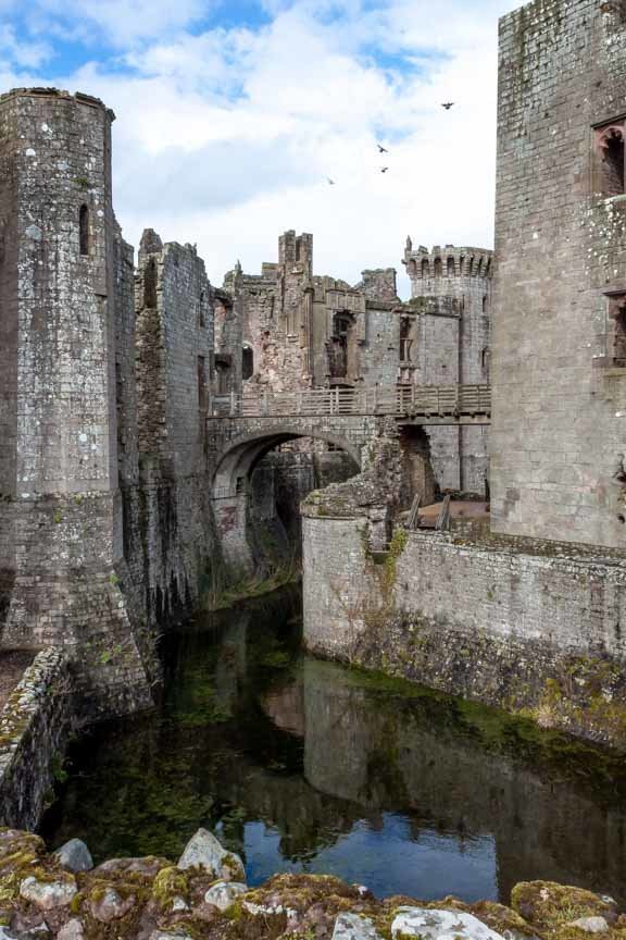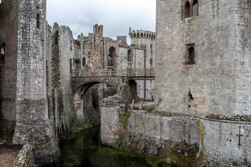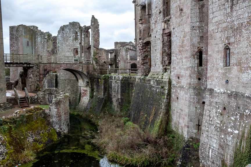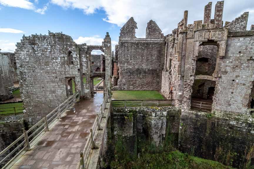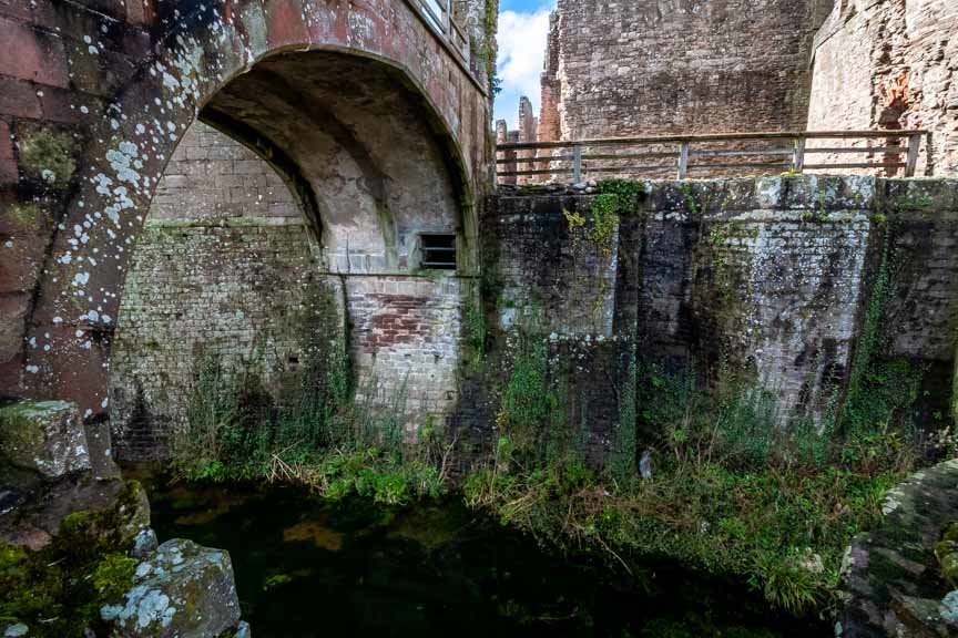 Auf dem Weg über die Brücke zum zweitürmigen Torhaus bekommt man schon einen Eindruck von der Repräsentation des Reichtums, den William ap Thomas zeigen wollte.