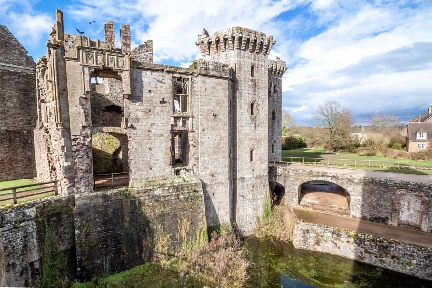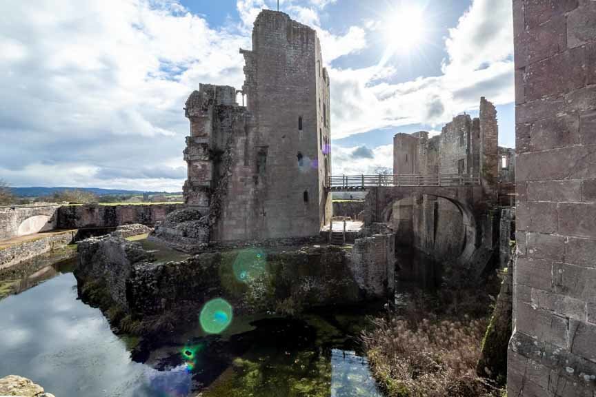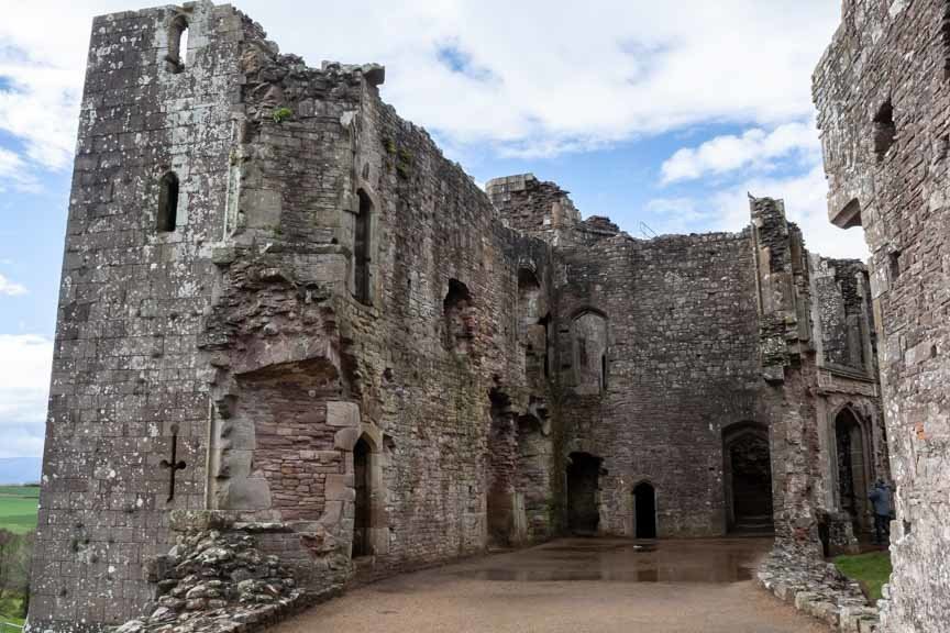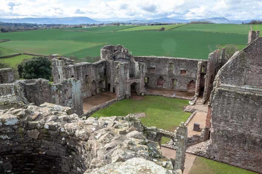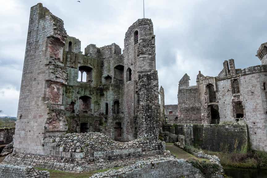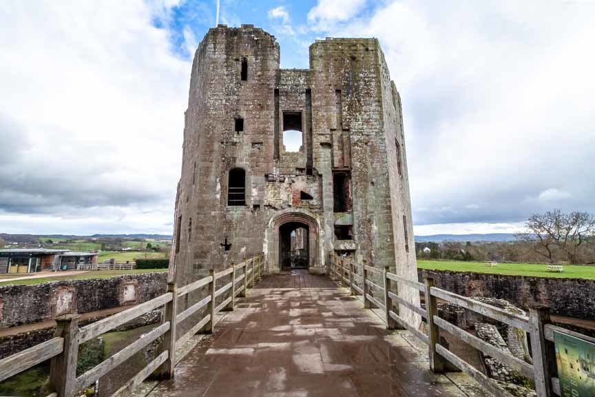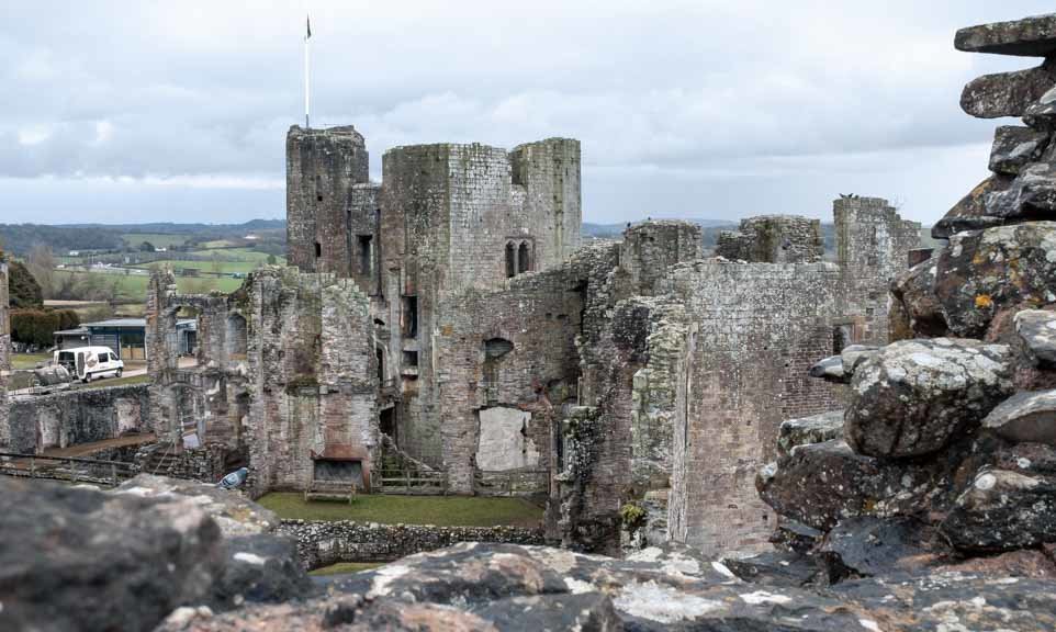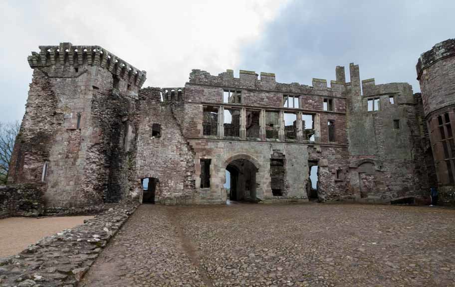 Auf dem Weg über die Brücke zum zweitürmigen Torhaus bekommt man schon einen Eindruck von der Repräsentation des Reichtums, den William ap Thomas zeigen wollte.